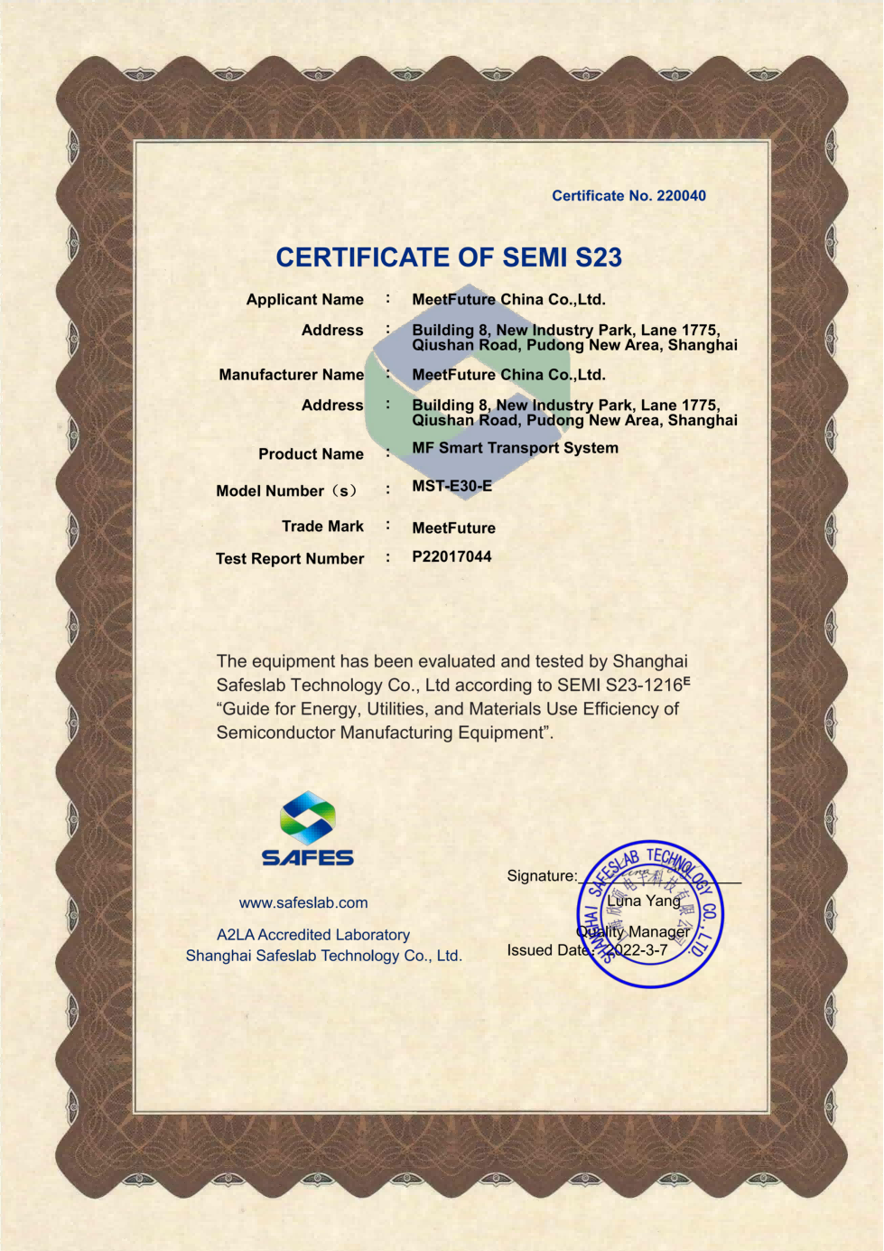 Since 2018, MiFET has obtained International Organization for Standardization (ISO) certifications for Quality Management System (ISO 9001), Environmental Management System (ISO 14001) and Occupational Health and Safety Management System (ISO 45001). In the field of AMHS product technology system, we follow the standard communication protocols for semiconductor equipment, including SEMI E37, E82, E30, E84, E10, etc., so that it is easy to connect to semiconductor fab MES system to realize data interaction.
